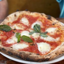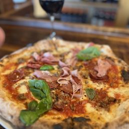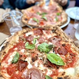 Very true Italian Pizzeria in Little Italy (New Haven), we had 3 pizzas I forgot the names but I have pics one three meats, on Margarita and the other had aged porchetta. We sat outside under a makeshift eating area. The pizzas are Neapolitan meaning very simple no Caesar's here just authentic Italian Pizza.